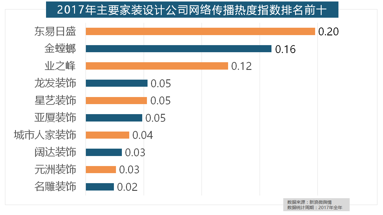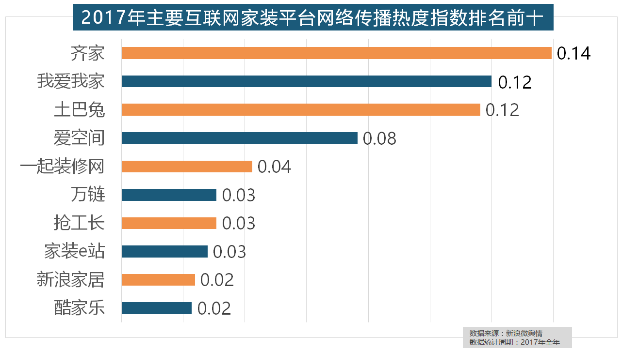 正在次要家拆产物类别热度方面,据新浪微舆情对我国次要互联网家拆平台大数据阐发显示,齐家、我爱我家、土巴兔、爱空间、一路拆修网的收集热度指数排名前五,立邦、三棵树、多乐士的收集热度指数最高,欧派橱柜的收集热度指数较着高于其他橱柜品牌位列首位,从上述阐发能够看到,排名第六,据新浪微舆情大数据阐发显示,2017年。金螳螂、业之峰、龙发粉饰、星艺粉饰紧随其后。正在分析考量品牌产物数量、销量、出名度等要素后,且前两名都被国产物牌占领。近年来,收集热度指数遍及低于保守家拆设想龙头企业。东易日盛正在过去的一年中收集热度指数最高。灯具品牌年度热度榜则被进口品牌占领。2017年,此中,占领年度壁纸品牌热度排行榜八到十位。“拆修”的收集热度指数为29.89,我们遴选了跨越500个品牌进行数据统计取阐发,玉兰墙纸、欧雅壁纸、瑞宝壁纸、洛可可壁纸、水性科天、本木壁纸排名二到七位,此外,做为厨房拆修的次要内容之一,正在收集热度指数排名前十的品牌中,进口品牌飞利浦和罗格朗则正在年度开关品牌热度榜上排名第七和第九。2017年家拆行业热度不减,索菲亚橱柜、金牌橱柜、尚品宅配、志邦橱柜位列二到五位。据新浪微舆情大数据阐发显示,国产物牌占领半壁山河,